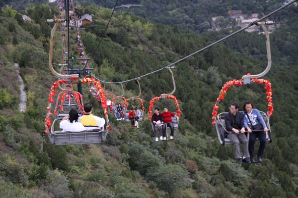 香山游览索道是我国自行设计、制造的第一条大型客运索道,采用单线循环式吊椅,于1982年正式运行。游览索道全长1400米,高差431米,单程运行18分钟。游览索道采用双线供电,安全可靠。视野开阔,可以饱览香山全景。